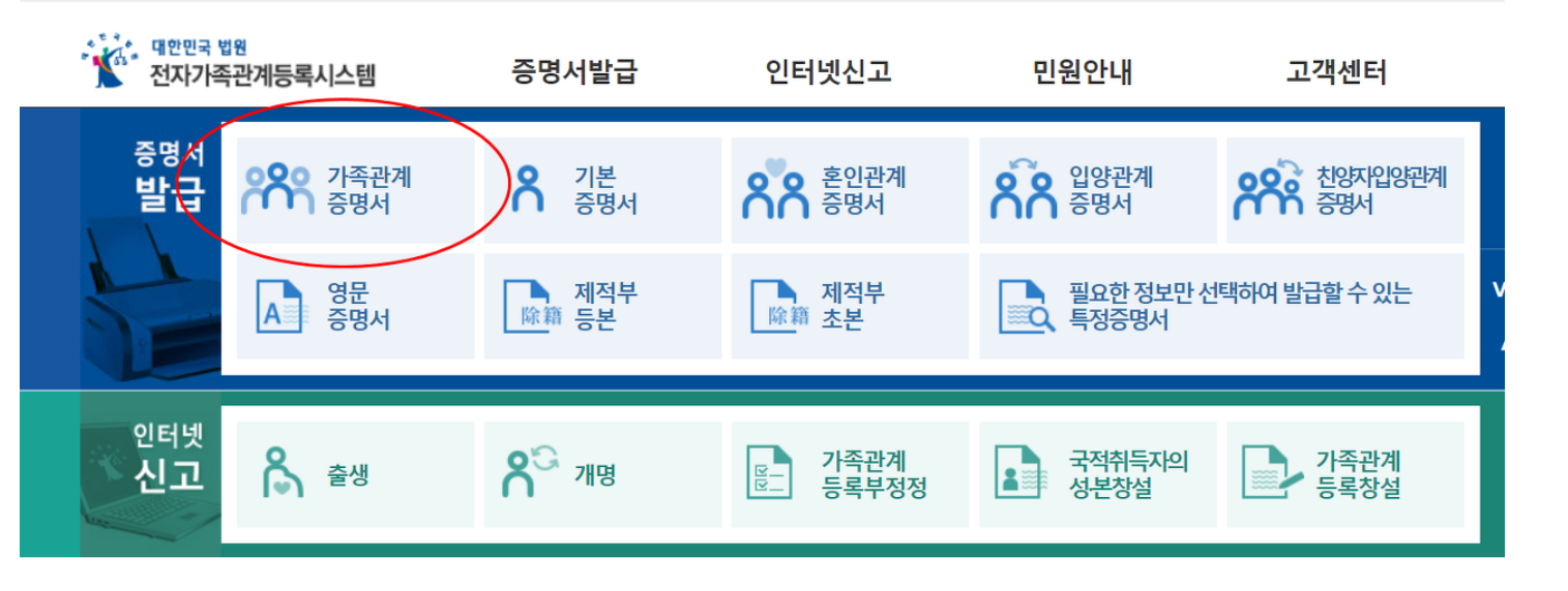 가족관계증명서 인터넷발급 방법