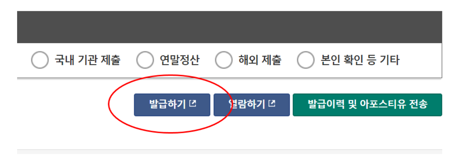 6. 그럼 신청서 화면으로 넘어갑니다. 각각의 항목을 정확히 선택 후 아래 발급하기를 클릭해주세요.