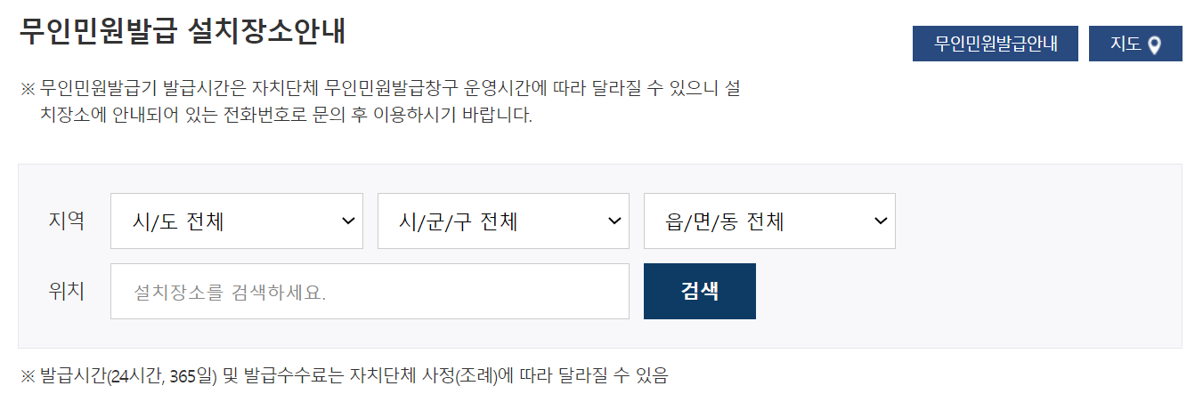 무인발급이 위치를 찾고 싶다면 아래 링크를 클릭해주세요. 지역별 위치를 확인할 수 있습니다.
