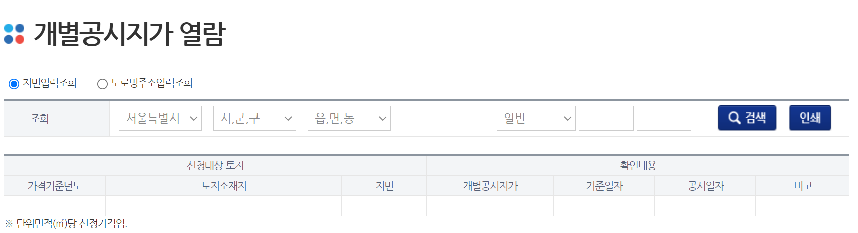 국토부 공시지가 조회 유의사항