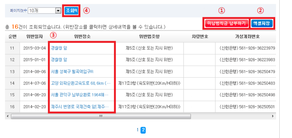 4. 그럼 다음과 같이 본인이 위반내역이 조회됩니다.