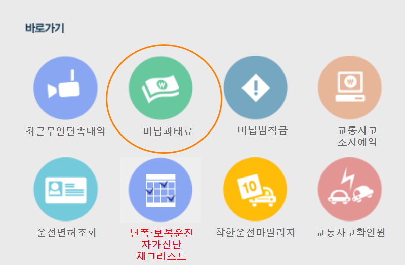 2. 접속 후 메인화면에 <미납과태료> 아이콘을 클릭해주세요.