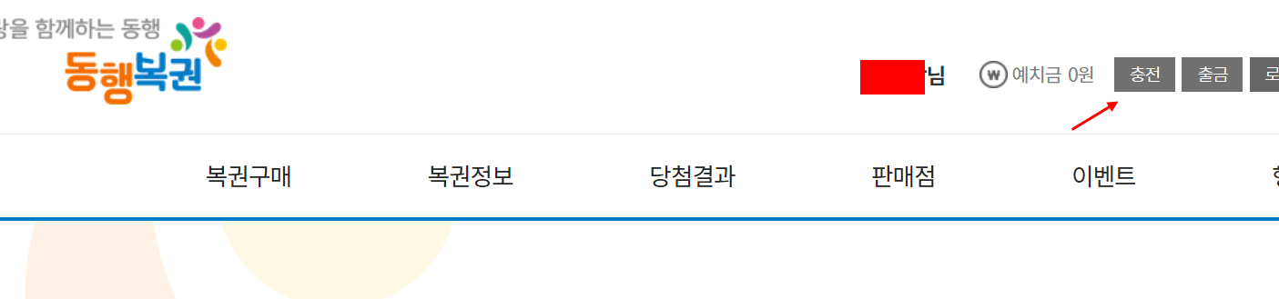 3. 복권 구매를 위해서는 예치금을 충전해야 합니다. 충전을 클릭해 진행해주세요.