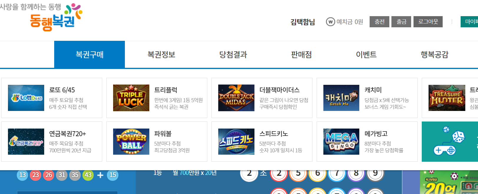 (로또 6/45, 연금복권, 캐치미, 메가빙고 등)