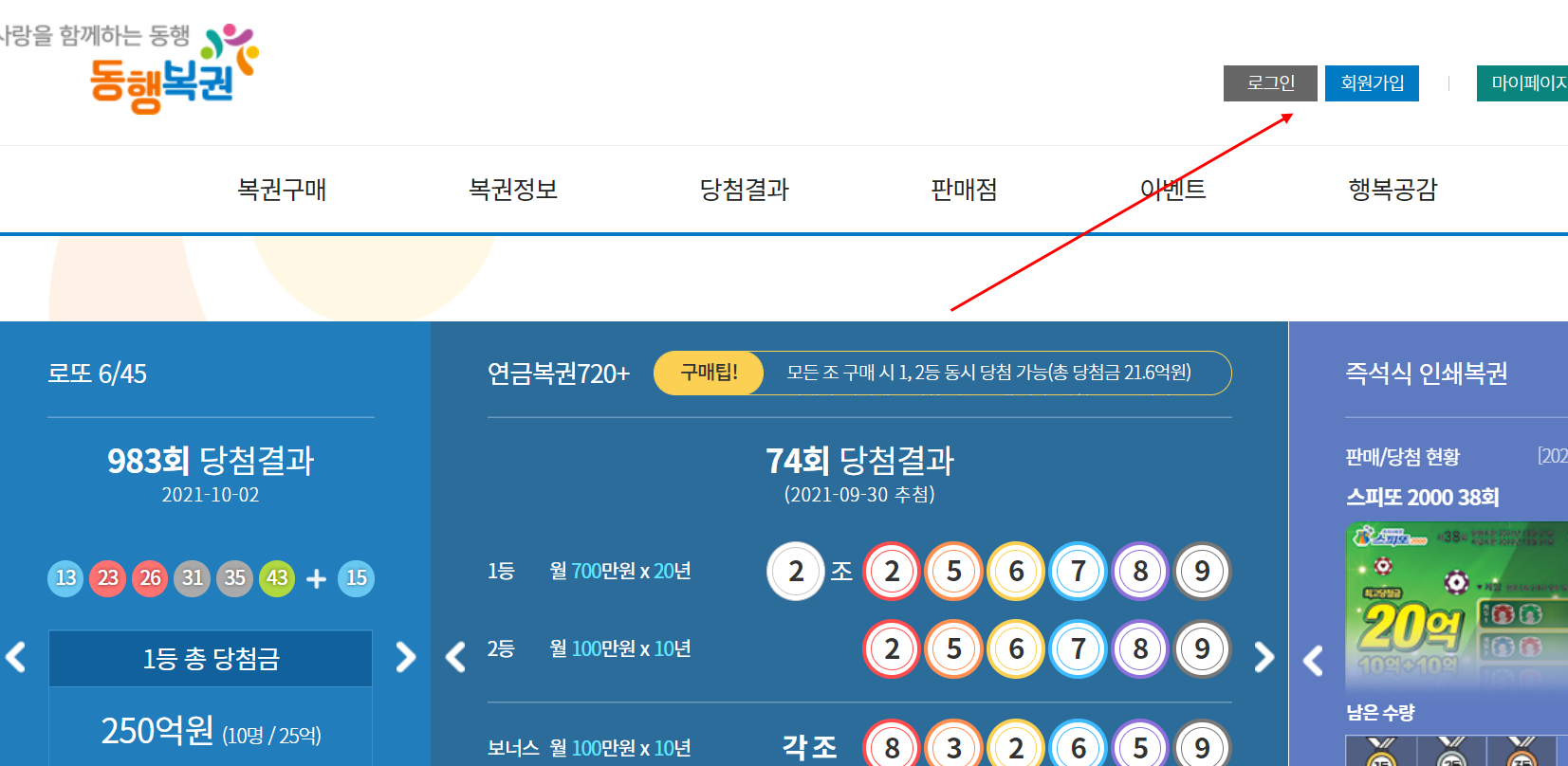 로또나 연금복권 등을 인터넷을 통해서도 구매할 수 있는데요. 바로 동행복권이라는 사이트를 이용하는 것입니다. 또한 당첨결과 확인도 편리하게 진행할 수 있습니다. 이밖에도 복권판매인 모집 공고도 올라오기도 합니다. 자세한 내용 및 이용은 아래에서 확인하세요.
