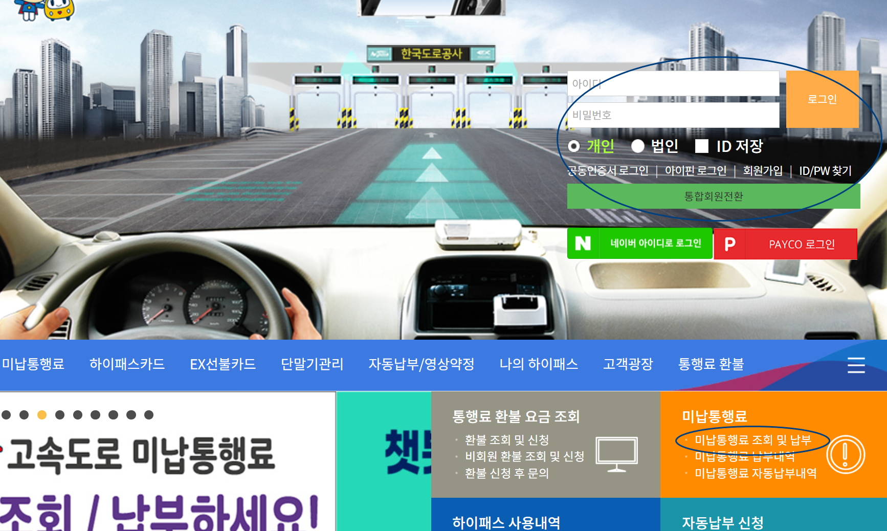 하이패스 미납요금 납부(홈페이지)