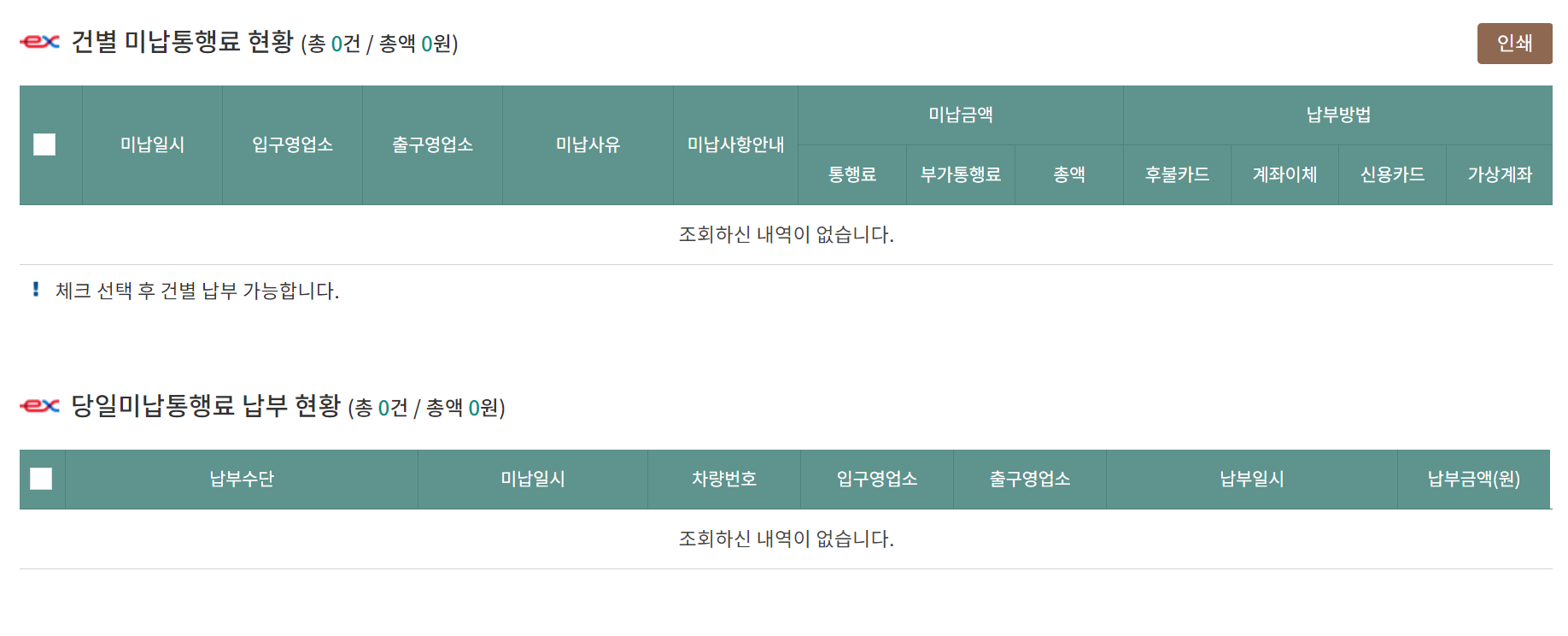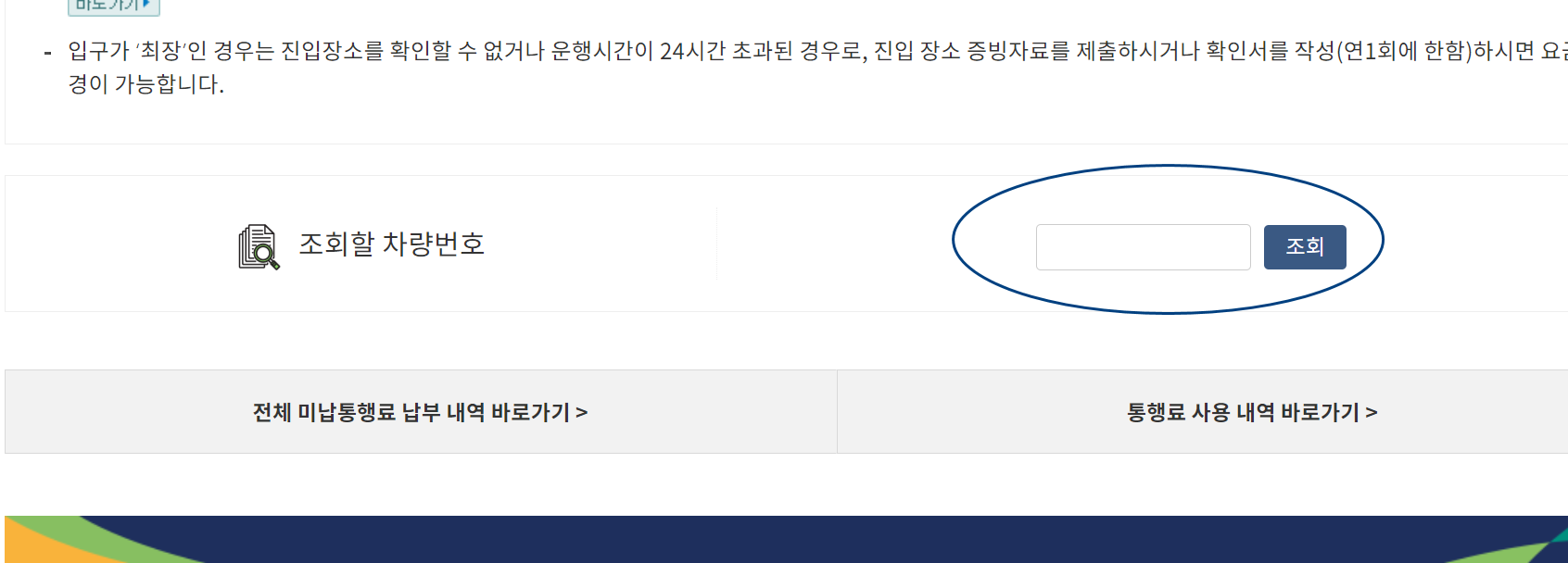 - 민자노선의 미납요금의 경우에는 해당 민자사 영업소에 문의하시기 바랍니다.